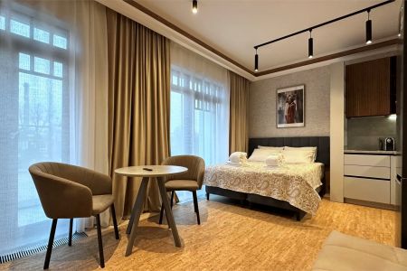 Гостям предлагаются комфортабельные апартаменты со стильным интерьером, оснащенные мебелью, кондиционером, телевизором, собственным балконом и санузлом с гигиеническими принадлежностями. Также имеется Wi-Fi и кухня для самостоятельного приготовления пищи. На территории комплекса работают ресторан «Ленинград», а также кафе «KAUNIS PAIKKA». Гостям апарт-отеля предлагается посетить СПА-центр, а также тренажерный зал. Автовладельцы имеют возможность оставить автомобиль на парковке.